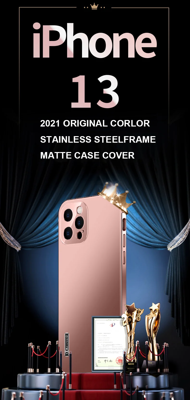 2021 Original Corlor Stainless Steel Frame Matte Case Cover For iPhone