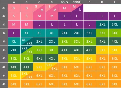 PRO TIP – IF YOU ARE IN BETWEEN BRA SIZES, WE RECOMMEND ORDERING THE LARGER SIZE FOR PROPER SUPPORT