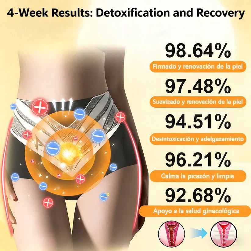 Titanium fibers release negative ions to neutralize free radicals, reduce oxidative stress, and promote detoxification. They help with scars, stretch marks, acne, and provide gynecological relief. Results are typically visible within two weeks.