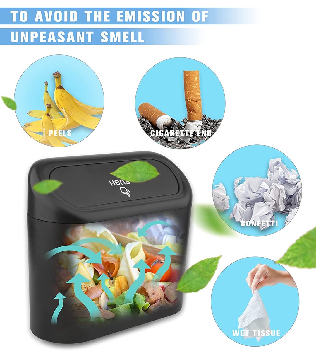 【Ergonomic Design】With the easy bounce cover and fully enclosed waterproof design, Ensure the trash can sealed well to avoid unpleasant odors from escaping into the car. Car garbage can bin maintains your vehicle clean.