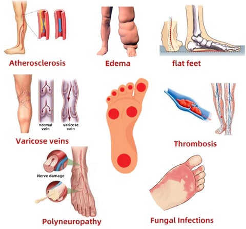 Our feet are rich in nerve endings and veins. Without proper massage and care over an extended period, blood circulation weakens, leading to calf swelling, blood congestion, and ultimately causing overall body swelling (visible obesity), lymphatic blockages, varicose veins, neuropathy, plantar fasciitis, and other conditions related to blood circulation and joint function.👣