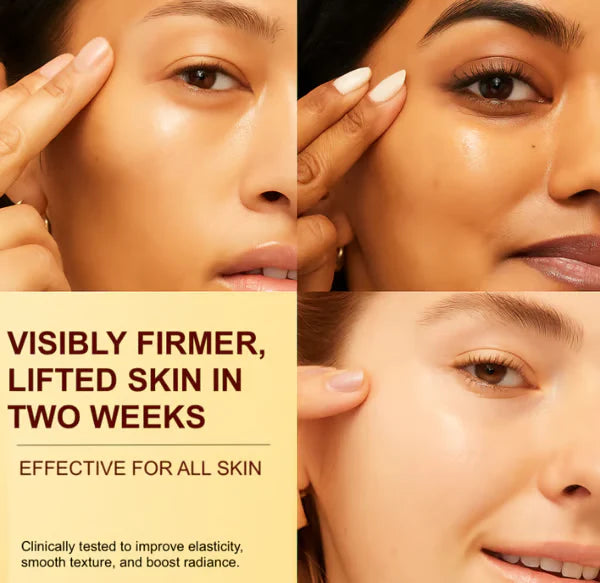 A fast-absorbing serum powered by 30 peptides, collagen threads, and silk proteins. lt helps tighten sagging, tired areas smoothes fine lines, and brings back a firmer, more lifted look without irritation or residue.
