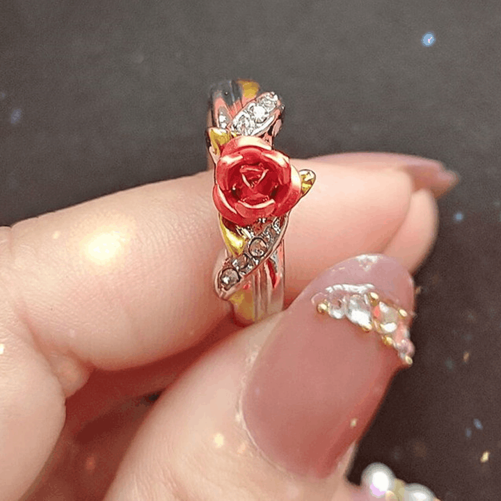 ❤️Elegant and exquisite red rose ring, retro fashion, can match any outstanding fashion clothing.