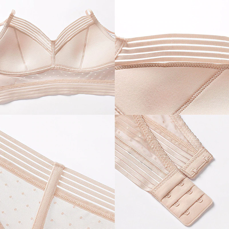 The unlined wire-free cups provides comfortable breast lift against sagging.