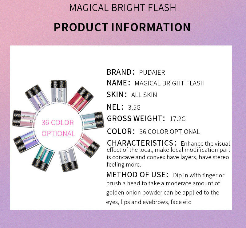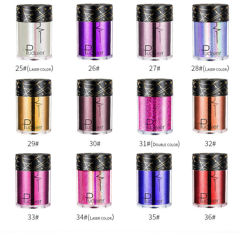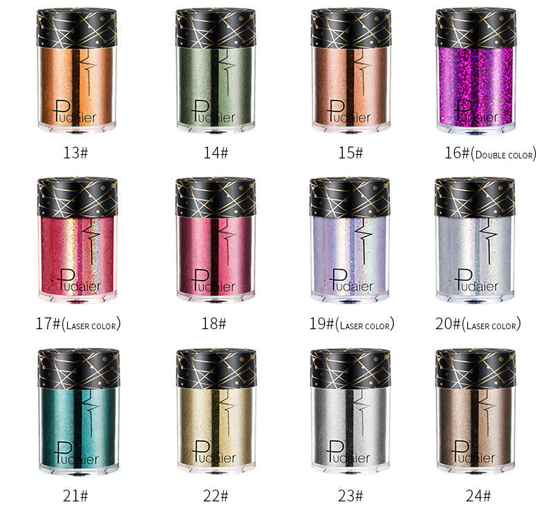 Shine like the star you are in Pudaier Professional Makeup Pigments! Available in glittering, sparkle-packed, saturated shades, these loose eyeshadow pigments make it easy to create a sparkling spectrum of captivating eye makeup looks. From radiant hues of velvety blue and teal, to glistening duo-chrome and metallic finishes.