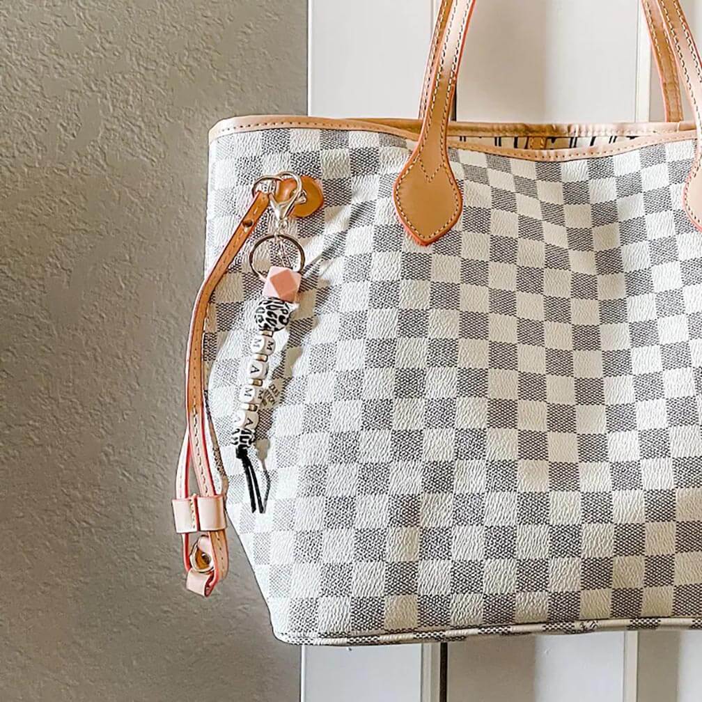 Mama keychain made with high-quality beads and leather tassel.