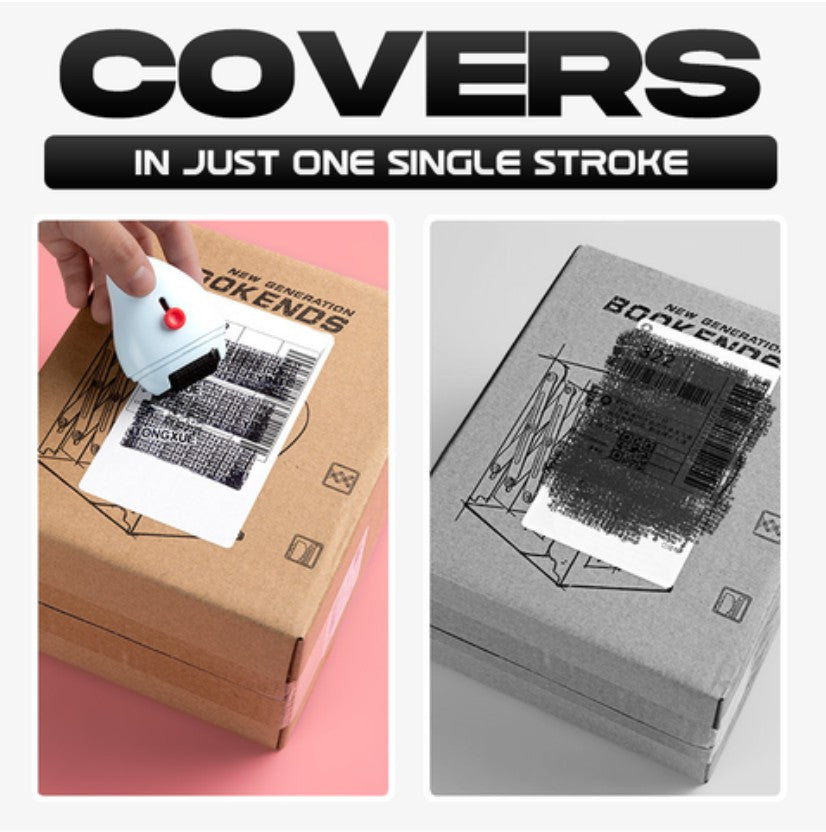 A uniquely designed pattern in combination with the formulated ink works on most papers and is perfect for covering large chunks of private information quickly and neatly. -