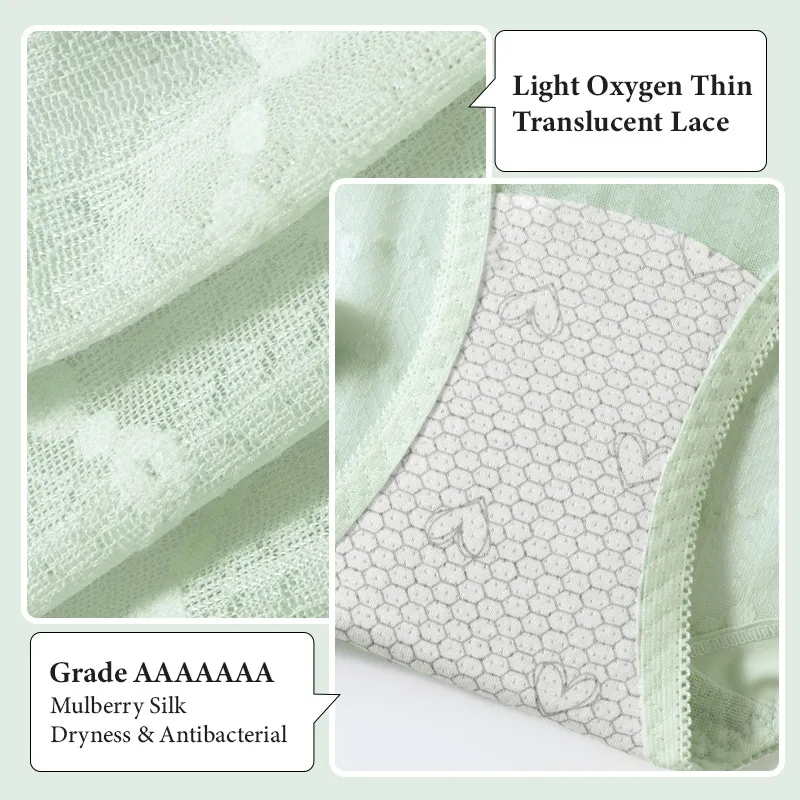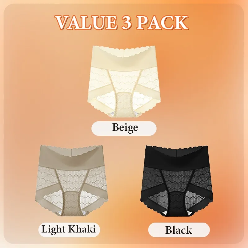 High waisted seamless skin-friendly lace panties for women, Mulberry silk antibacterial crotch, comfortable warping hips & slight tummy control plus size underwear.